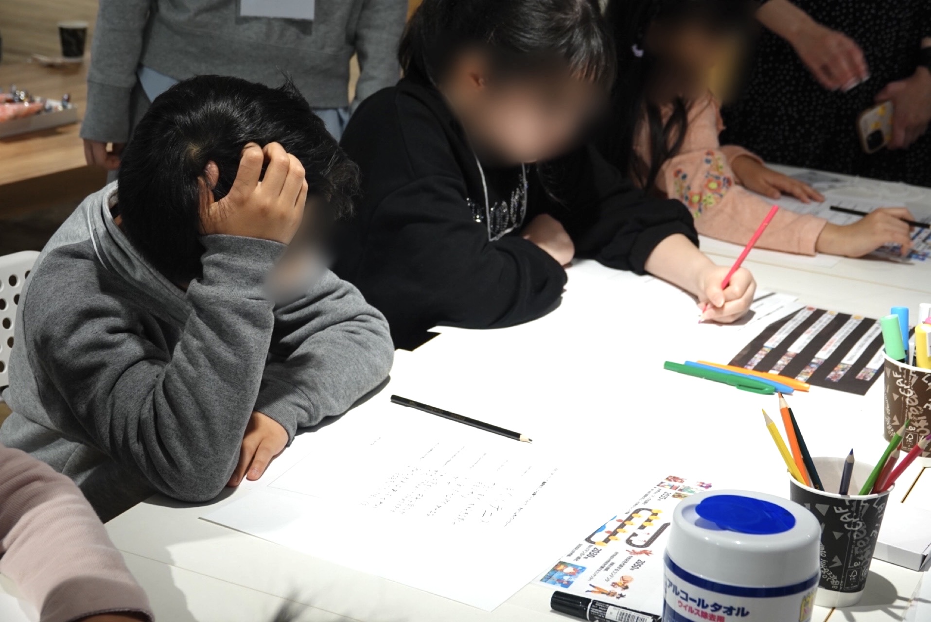 皆、メモ用紙に企画を書き込むことに夢中になり、なかなか画用紙に絵やストーリーを描き始められません。