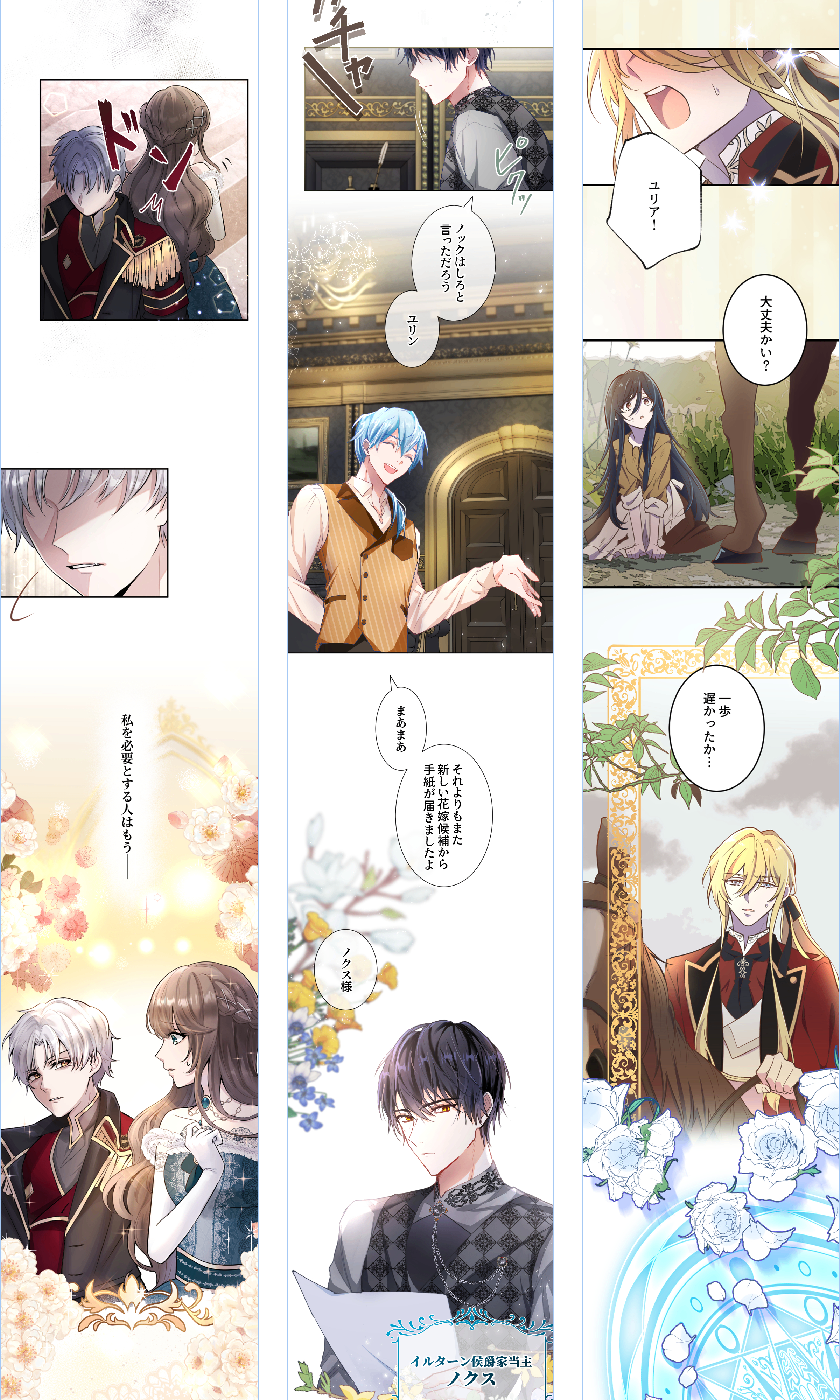 また、『生意気殿下の家庭教師になりました』の1話のシーンでは一瞬の出来事を大きいコマが続くように配置し、読者の目が留まる時間を長くし、まるで時間が止まったように演出しています。