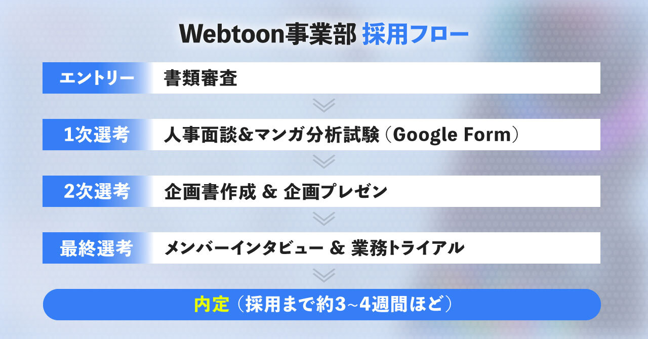 リカバリーの仕方によっては、それで問題ないと判断することもあります。Webtoonのマーケット分析をして企画書を作るのはほとんどの人が未経験でしょうし、初めてやることだからミスが出るのも当然だと思うんです。大事なのは、ミスがあった時の向き合い方。ミスを絶対にしないかどうかではなく、ミスを指摘された後にどう対処するかですね。場合によってはリベンジマッチに回ってもらうこともあります。