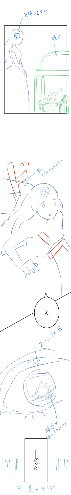 これらの要素をうまく使いながら、脚本の中の一番の見せ場や強調すべき部分、または省いても良い部分などを判断し、読者がサクサクと読めるネームを作っていきます。
