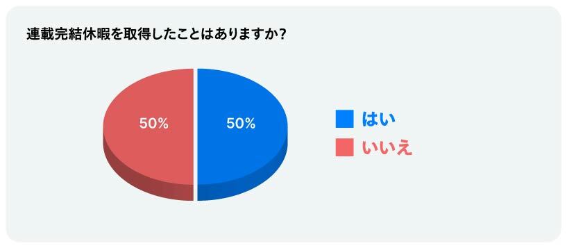 連載完結休暇を取得したことがある社員はちょうど半数ほど。