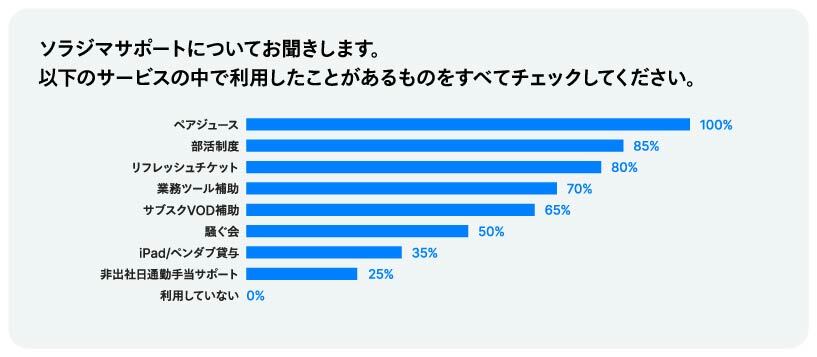 今回は、数あるソラジマサポートのなかでも、社員が最も好きな福利厚生についてもアンケートを取っています。